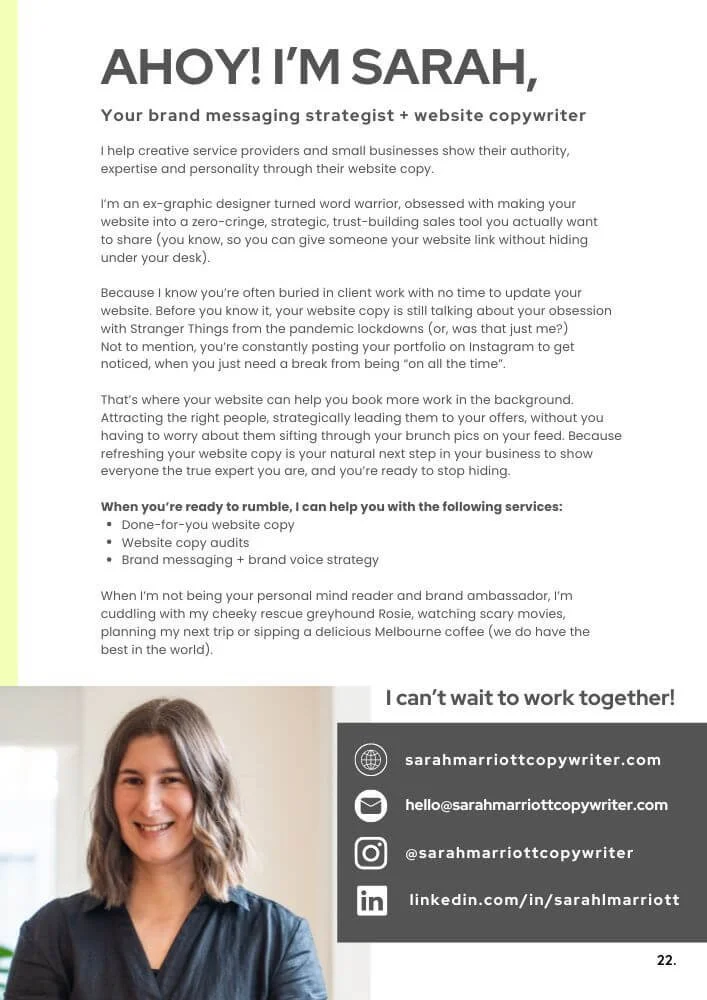 Made specially for creative service providers, freelancers and small businesses, ready for a website copy refresh.